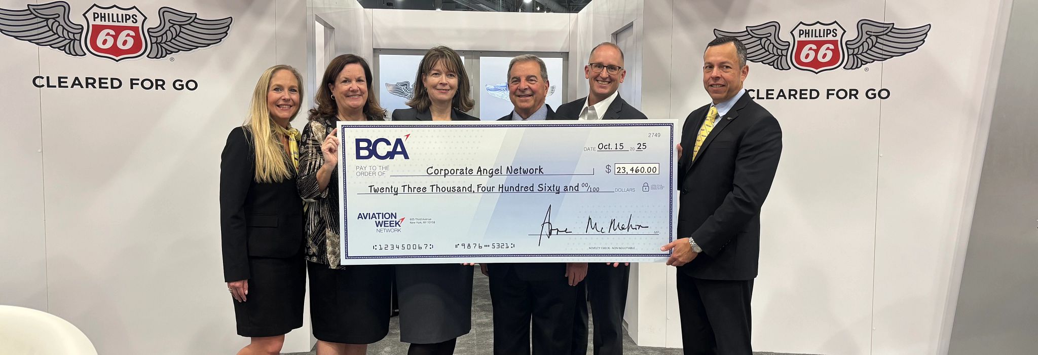 HOUSTON – (Oct. 14, 2025) – Phillips 66® Aviation, one of the largest refiners in the United States and a major jet and avgas fuel supplier to general aviation, commercial and military aviation, presented a $23,460 check to Corporate Angel Network (CAN) during the 2025 NBAA Business Aviation Convention & Exhibition (NBAA-BACE). This contribution marks 15 years of meaningful support, reflecting Phillips 66® Aviation’s ongoing commitment to helping CAN connect cancer patients with vital care through free flights on corporate aircraft.