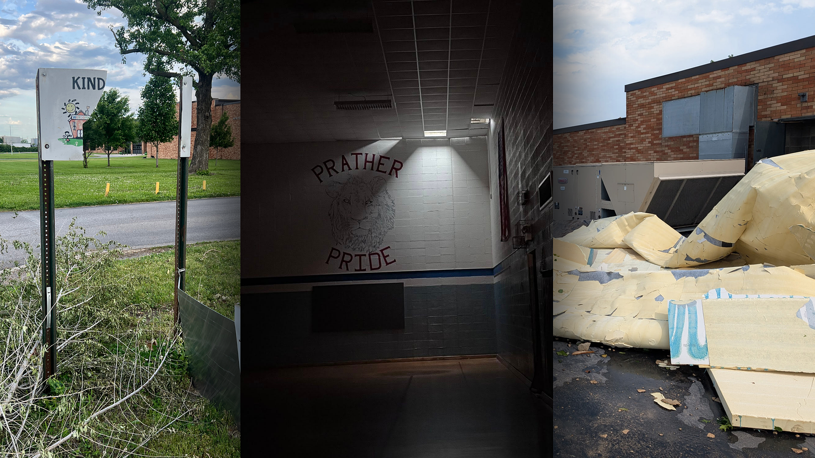 One particularly hard-hit community was Granite City, Illinois. While media attention largely focused on the damage within St. Louis, Granite City suffered severe impacts, including damage to multiple schools in the Granite City Community Unit School District #9. At Prather Elementary, the roof of the gymnasium was completely torn off — just days before the end of the school year.
